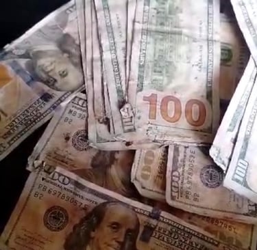 Snapshots of currency in various damaged conditions we handle daily